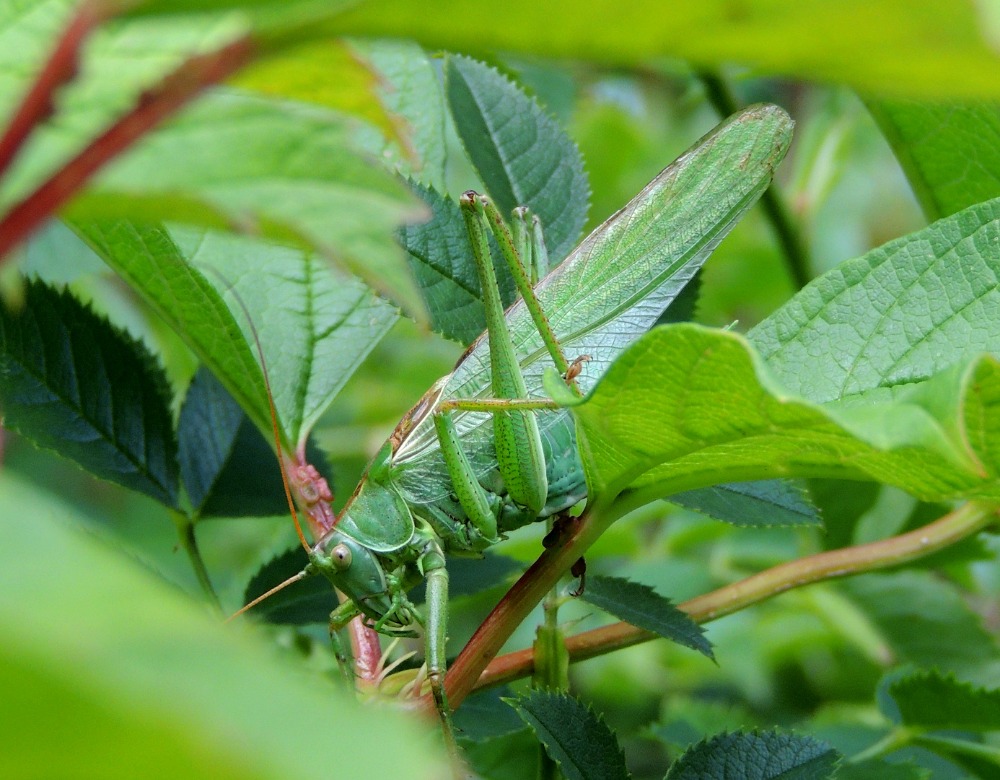 og stor grøn løvgræshoppe (billedet t.v). Sidstnævnte har en meget højlydt sang